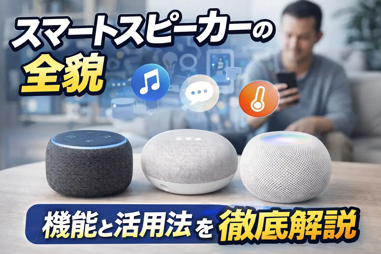 はじめに:スマートスピーカー選びで失敗しないための完全ガイド 「今日の天気は?」「30分後にタイマーをセットして」「リビングの電気を消して」。声だけで様々な操作が完了する。そんな未来的な生活を可能にするのが、スマートスピーカーです。音楽再生はもちろん、ニュースの読み上げ、家電操作まで、一台あるだけで驚くほど 生活が便利になる デバイスとして、急速に普及が進んでいます。 国内の市場規模も拡大を続けており 、もはや特別なガジェットではありません。 しかし、いざ購入しようとすると、多種多様なモデルを前に「 どれを選べばいいか わからない」と感じる方も多いのではないでしょうか。特に スマートスピーカー初心者 の方にとっては、専門用語や機能の違いが複雑に見えるかもしれません。本ガイドは、そんなあなたの疑問や不安を解消し、最適な一台を見つけるための羅針盤となることを目指しています。 スマートスピーカーとは何か?AIアシスタントが鍵 まず基本から整理しましょう。 スマートスピーカー とは、対話型の AIアシスタント を搭載したスピーカーのことです。ユーザーが話しかけた内容をAIが理解し、情報提供やデバイスの操作を実行します。重要なのは、どのAIアシスタントを搭載しているかという点です。現在、市場は主に3つのAIアシスタントによって形成されています。 Amazon Alexa :Amazon Echoシリーズに搭載。ECサイトとの連携が強力で、対応デバイスも豊富です。 Googleアシスタント :Google Nestシリーズに搭載。Androidスマートフォンとの親和性が高く、検索能力に定評があります。 Apple Siri :Apple HomePodシリーズに搭載。iPhoneやMacなど、Apple製品とのシームレスな連携が魅力です。 どのAIアシスタントを選ぶかが、スマートスピーカー体験の質を大きく左右します。あなたが普段利用しているサービスやスマートフォンとの相性を考えることが、最初の重要なステップです。 このガイドでわかること:後悔しないための3つのステップ この完全ガイドでは、あなたが後悔しない選択をするために、3つのステップで選び方を解説します。AIアシスタントの比較から、音質、デザイン、そして最も重要な スマートホーム 連携まで、購入前に知っておくべき全ての情報を網羅します。各製品のスペックを詳細に比較したい場合は、当社の「 製品比較ガイド 」も併せてご覧ください。客観的なデータに基づいたレビューが、あなたの判断をサポートします。 「でも、 設定は難しくない の?」という心配も無用です。近年のモデルは、スマートフォンのアプリを使って数分で初期設定が完了するように設計されています。もし途中で分からなくなっても、smarthacks.jpの「 スマートスピーカー基礎知識 」セクションで、セットアップ手順を分かりやすく解説していますのでご安心ください。 スマートスピーカーは、単なる音楽再生デバイスではありません。照明やエアコン、ロボット掃除機などを連携させることで、あなたの家をスマートホームへと進化させる入り口です。私たちの「 IoTとライフスタイル記事 」を参考に、未来の生活をイメージしながら、あなたにぴったりの一台を見つけていきましょう。 はじめに:スマートスピーカー選びで失敗しないための完全ガイド 「今日の天気は?」「30分後にタイマーをセットして」「リビングの電気を消して」。声だけで様々な操作が完了する。そんな未来的な生活を可能にするのが、スマートスピーカーです。音楽再生はもちろん、ニュースの読み上げ、家電操作まで、一台あるだけで驚くほど生活が便利になるデバイスとして、急速に普及が進んでいます。国内の市場規模も拡大を続けており、もはや一部のガジェット好きのためだけの特別な製品ではありません。 しかし、いざ購入しようとすると、Amazon Echo、Google Nest、Apple HomePodといった主要ブランドから、オーディオメーカーが手掛ける高音質モデルまで、多種多様な製品を前に「結局、どれが自分に合っているのだろう?」と途方に暮れてしまう方も多いのではないでしょうか。特にスマートスピーカー初心者の方にとっては、専門用語や機能の違い、そして価格帯の幅広さが、選択を一層難しくさせているかもしれません。本ガイドは、そんなあなたの疑問や不安を一つひとつ解消し、数ある選択肢の中から最適な一台を見つけ出すための、信頼できる羅針盤となることを目指しています。 スマートスピーカーとは何か?AIアシスタントが鍵 まず基本から整理しましょう。スマートスピーカーとは、対話型のAIアシスタントを搭載したスピーカーのことです。本体に内蔵されたマイクがあなたの声を拾い、インターネットを通じてクラウド上のAIがその言葉の意図を解析し、情報提供やデバイスの操作といった形で応答する仕組みです。この体験の質を根幹から支えているのが、どのAIアシスタントを搭載しているかという点です。現在、市場は主に3つのAIアシスタントによって形成されて